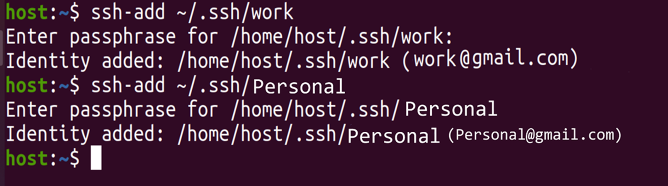 After configuring multiple SSH keys and testing the setup, you can enhance the workflow by using the ssh-add command. This command adds private keys to the SSH authentication agent, eliminating the need to enter the passphrase every time you use the keys.