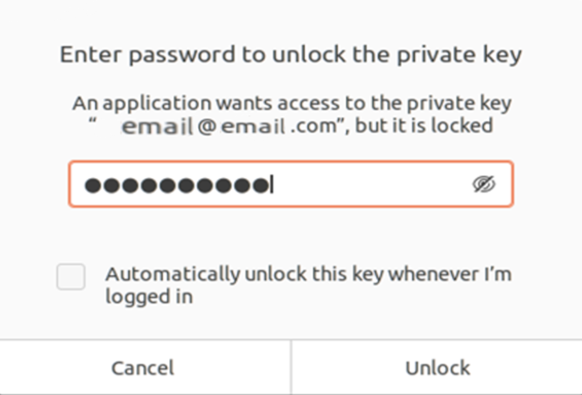 While testing you might be prompted to enter a password to unlock the private key. Enter the password given to the key that you generate in the steps above to continue with the operation.